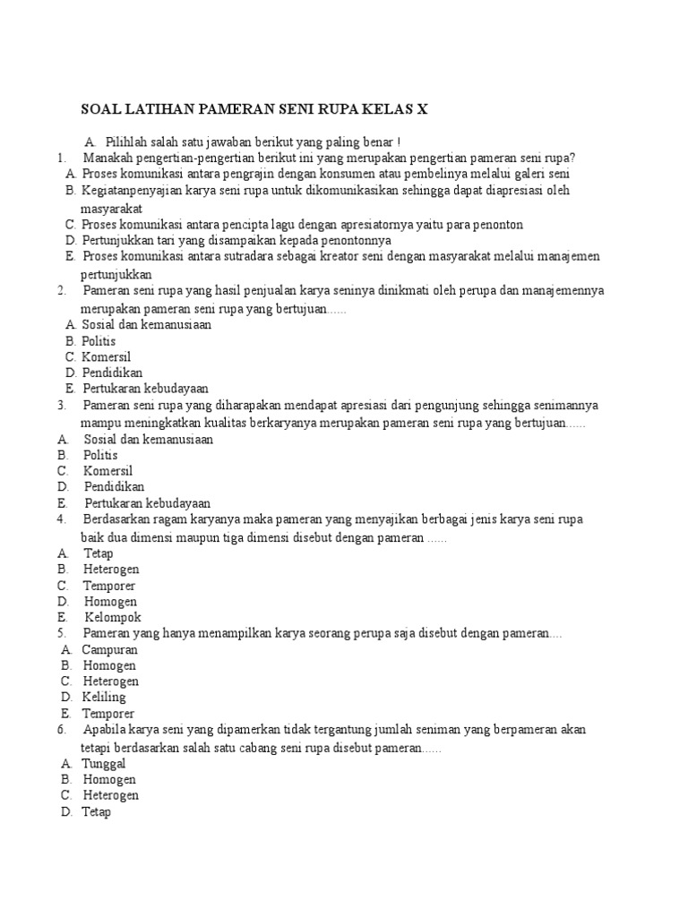 Ulangan Pertama Di Semester 2 Kelas X Proprofs Quiz from media.proprofs.com Maybe you would like to learn more about one of these? Pameran seni rupa yang hasil penjualan karya seninya dinikmati oleh perupa dan manajemennya merupakan pameran seni rupa yang bertujuan. We did not find results for: Check spelling or type a new query.